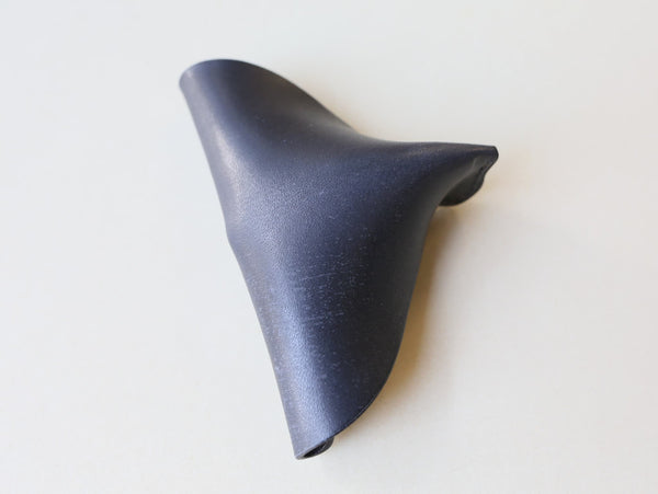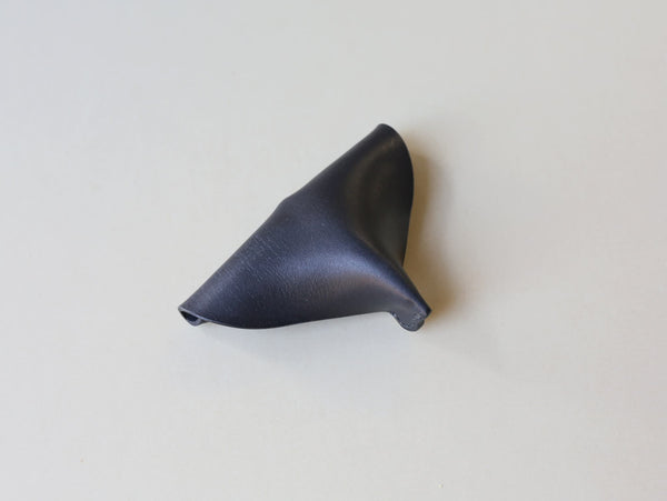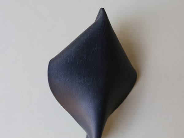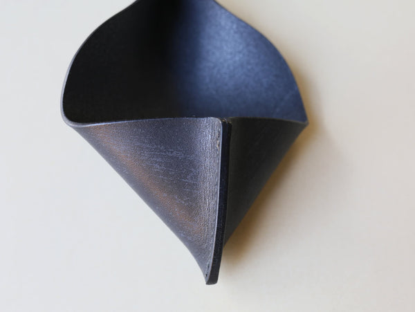 革と糸のみで作られた、革の可塑性を生かした小銭入れ。